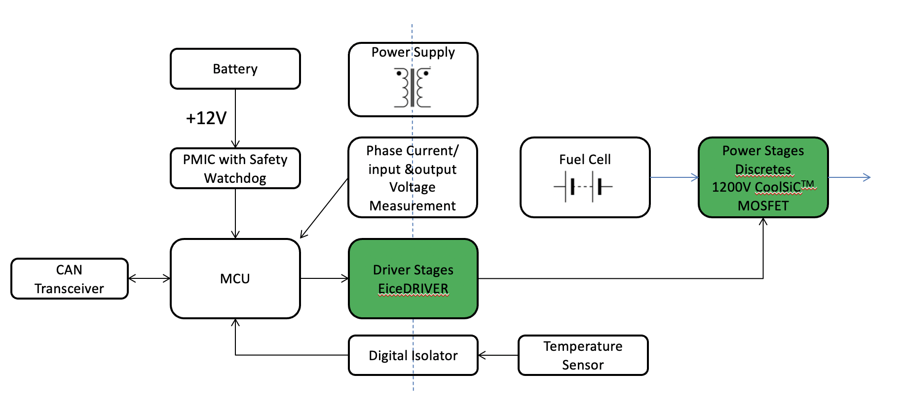今天我們就來介紹一下英飛凌的燃料電池DC/DC升壓轉換器解決方案。該方案由英飛凌的EiceDRIVER和SiC MOSFET分立功率組成,可提高電動汽車系統的效率、性能及可靠性。產品即使在極高地開關頻率下也能實現一流的開關和導通損耗,以獲得更高的轉換效率、更小的尺寸和更大的功率密度。