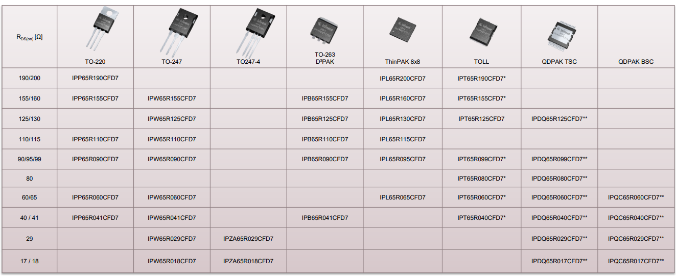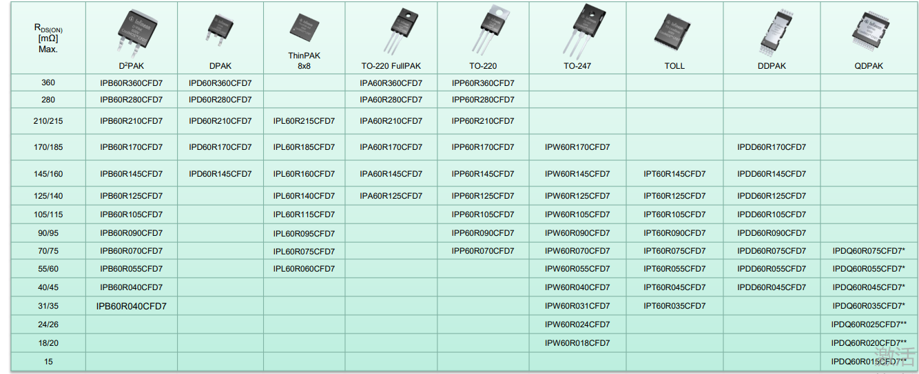 對于效率要求高的產品,可以使用全碳化硅的高壓CoolSiC解決方案,下面是英飛凌碳化硅MOS的產品。