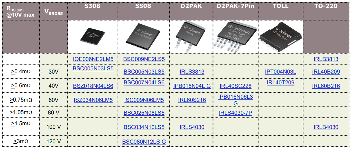 下面是DC-DC的Buck-Boost/Buck Converter 推薦的英飛凌的低壓MOSFET的產品系列: