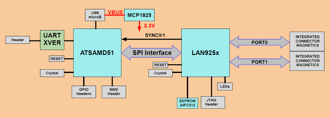 LAN925X集成了兩路以太網(wǎng)PHY的2/3端口,EtherCAT從控制器,包括了全雙工100BASE-TX收發(fā)器和支持100Mbps (100BASE-TX),支持3個(gè)Fieldbus存儲(chǔ)器管理單元(FMMU)和4個(gè)SyncManagers,此外,還支持SPI、QSPI、8位并口等多種接口。它具有以下優(yōu)異的性能:
