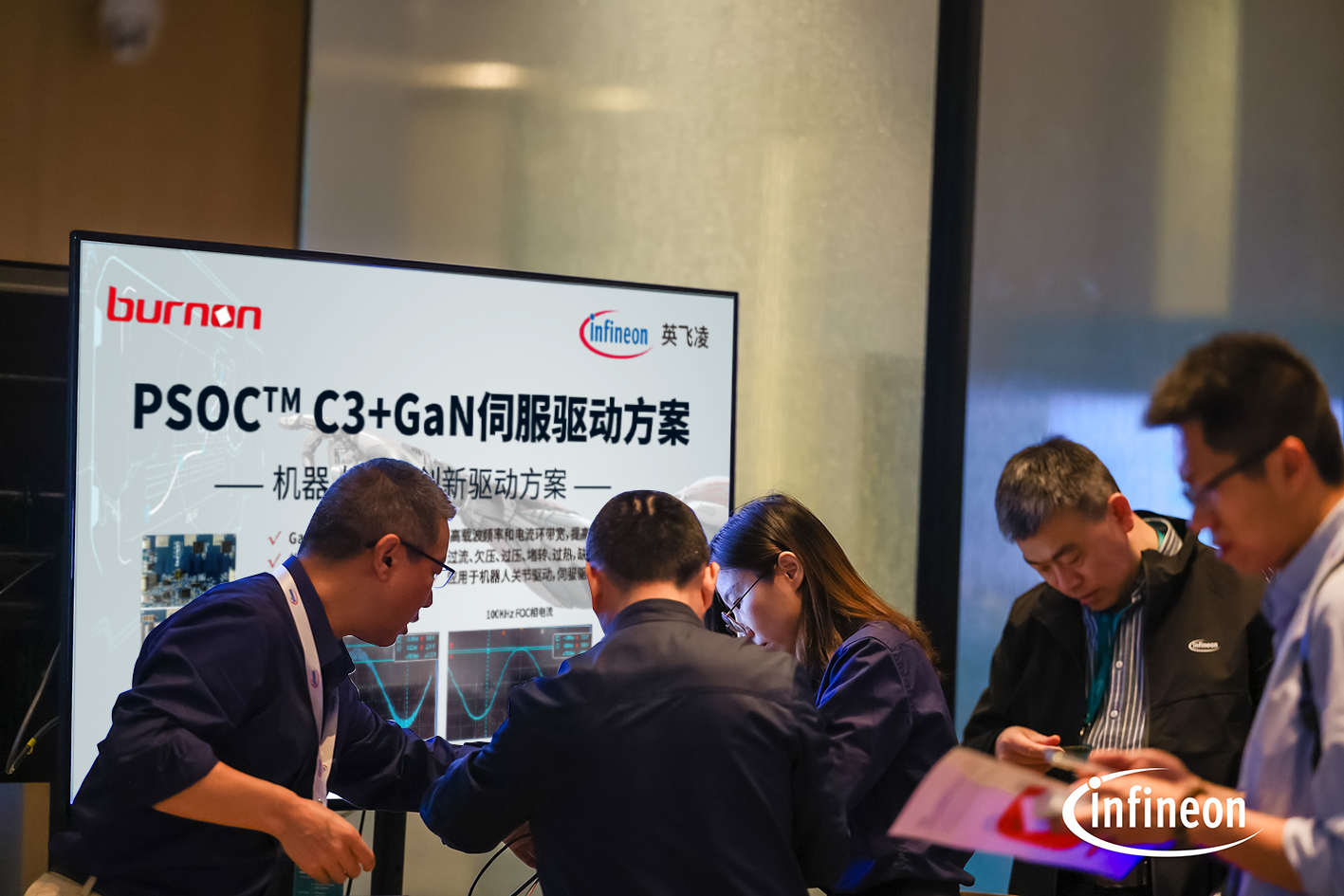 現場展示區人流如織,眾多行業專家、企業代表駐足體驗,對該方案的性能突破與精巧設計表現出濃厚興趣。 貝能國際應用設計中心應用經理韓先生在大會演講中詳細解讀了該方案的核心優勢: GaN技術賦能高效能:采用英飛凌IGC033S10S1 GaN功率器件,開關損耗降低80%,系統效率高達99%,溫升顯著減少,壽命延長; 超高控制精度:基于PSoC? C3微控制器(主頻180MHz),實現100KHz電流環、10KHz速度環及5KHz位置環控制,動態響應無與倫比; 緊湊設計突破體積限制:無大電解電容設計,功率密度提升30%,PCB尺寸僅50x82x8mm,適用于機器人關節、工業伺服等空間敏感場景。 會議現場,多家機器人廠商與工業自動化企業代表主動與貝能團隊接洽,針對方案的23位絕對值編碼器、多級保護機制等技術細節展開深度探討。 共話未來,加速行業智能化轉型 大會期間,貝能團隊與英飛凌專家、行業領袖及客戶代表深入交流,探討AIoT、機器人及邊緣計算領域的技術趨勢。貝能未來將持續深化與英飛凌的合作,推動GaN與高性能MCU技術在更多場景落地,助力客戶縮短開發周期、降低系統成本。