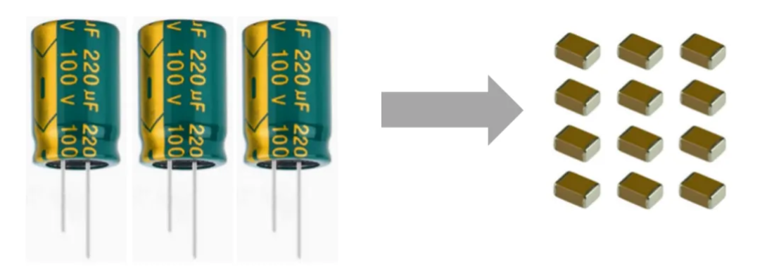 更高的載頻,可降低母線電源紋波,使用貼片電容(MLCC)取代大電解電容,體積縮小98%